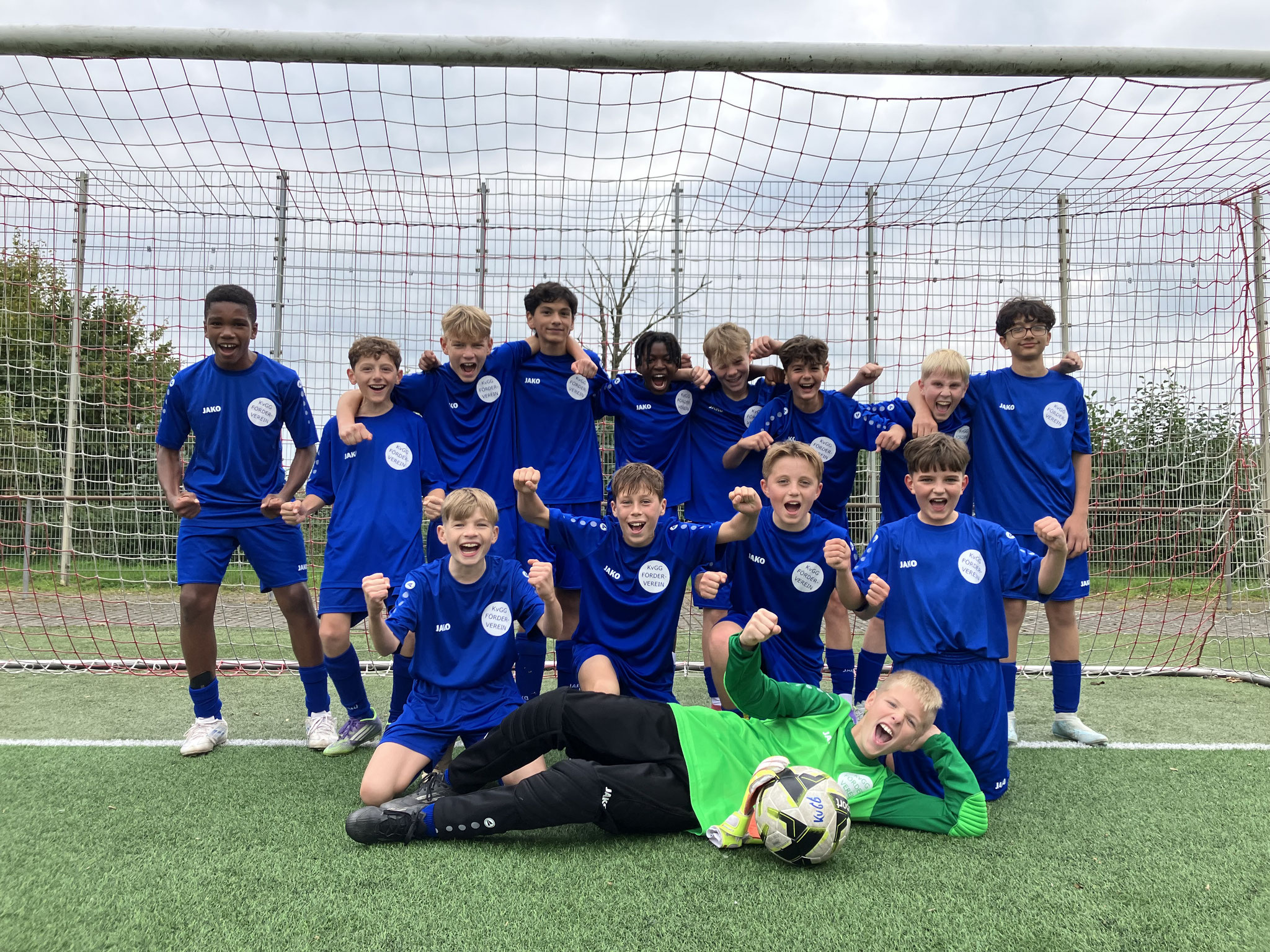 Doch bis es so weit sein sollte, war es ein hartes Stück Arbeit. Zunächst einmal hieß es, sich für das Finalturnier zu qualifizieren und dabei war der Sieg im Vorrundenturnier in Kevelaer ein Nervenkrimi. Einem 3:0 Erfolg gegen die Gesamtschule Kevelaer, bei dem sich Viktor, Majeed und Timo in die Torschützenliste eintrugen, folgte ein Nervenspiel gegen die Gaesdonck aus Goch. Nach zwischenzeitlichem Rückstand steckten die Jungs nicht auf und verdienten sich den Ausgleich durch Majeed kurz vor Schluss, der die Mannschaft ins Elfmeterschießen um den Turniersieg rettete. Dort blieben die KvGG-Schüler eiskalt. Leo parierte im Tor einen Strafstoß, was seinen Mitspielern die Sicherheit gab, ihre Elfmeter sicher zu verwandeln. Osman, Henri, Torben und Julius ließen dem gegnerischen Torhüter nicht den Hauch einer Chance, sodass der Turniersieg feststand.